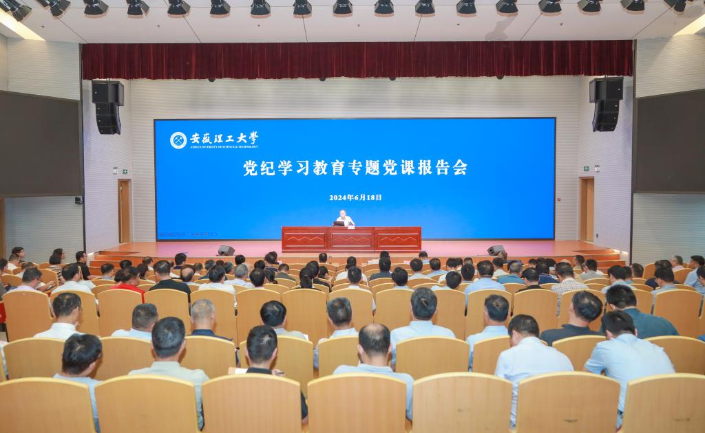 根据学校党纪学习教育工作安排,为深入学习贯彻新修订的《中国共产党纪律处分条例》,扎实推动党纪学习教育走深走实,6月18日下午,校党委书记郭永存在舜耕会堂作《<中国共产党纪律处分条例>重点条文案例警示教育》专题党课报告。校党委副书记、常务副校长余玉刚,校党委常委、副校长宫能平、鲁超,校党委常委、纪委书记、监察专员王献余,校党委常委、副校长王先江出席会议。